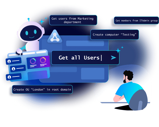 Turn complex Active Directory management into a simple chat with AdminDroid AI Assistant for Active Directory. Easily explore and manage users, groups, computers, and much more in plain English.