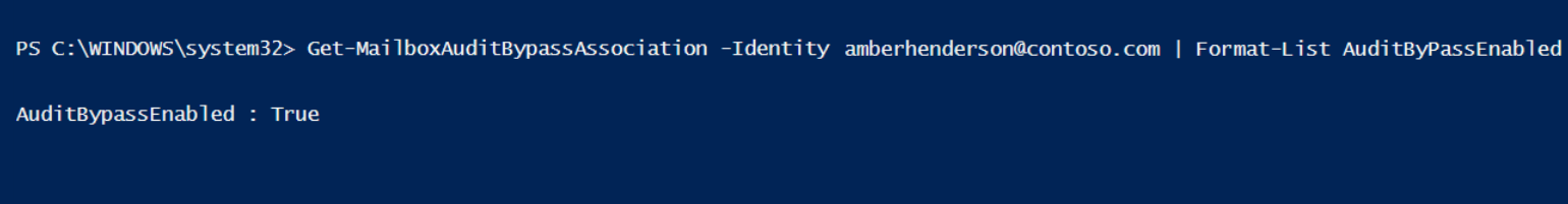 Get-Mailbox -Identity "<user@contoso.com>" | Format-List AuditEnabled