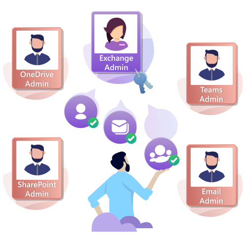Grant delegated access to your various resource owners with access only to monitor the resources that they own. Using prebuilt roles such as Manage Direct Reports, Manage Owned Groups, Manage Mailboxes with Full Access, Manage Owned Sites, and Manage Owned Teams, admins can easily grant delegated access to users to access only the data with ownership rights.
